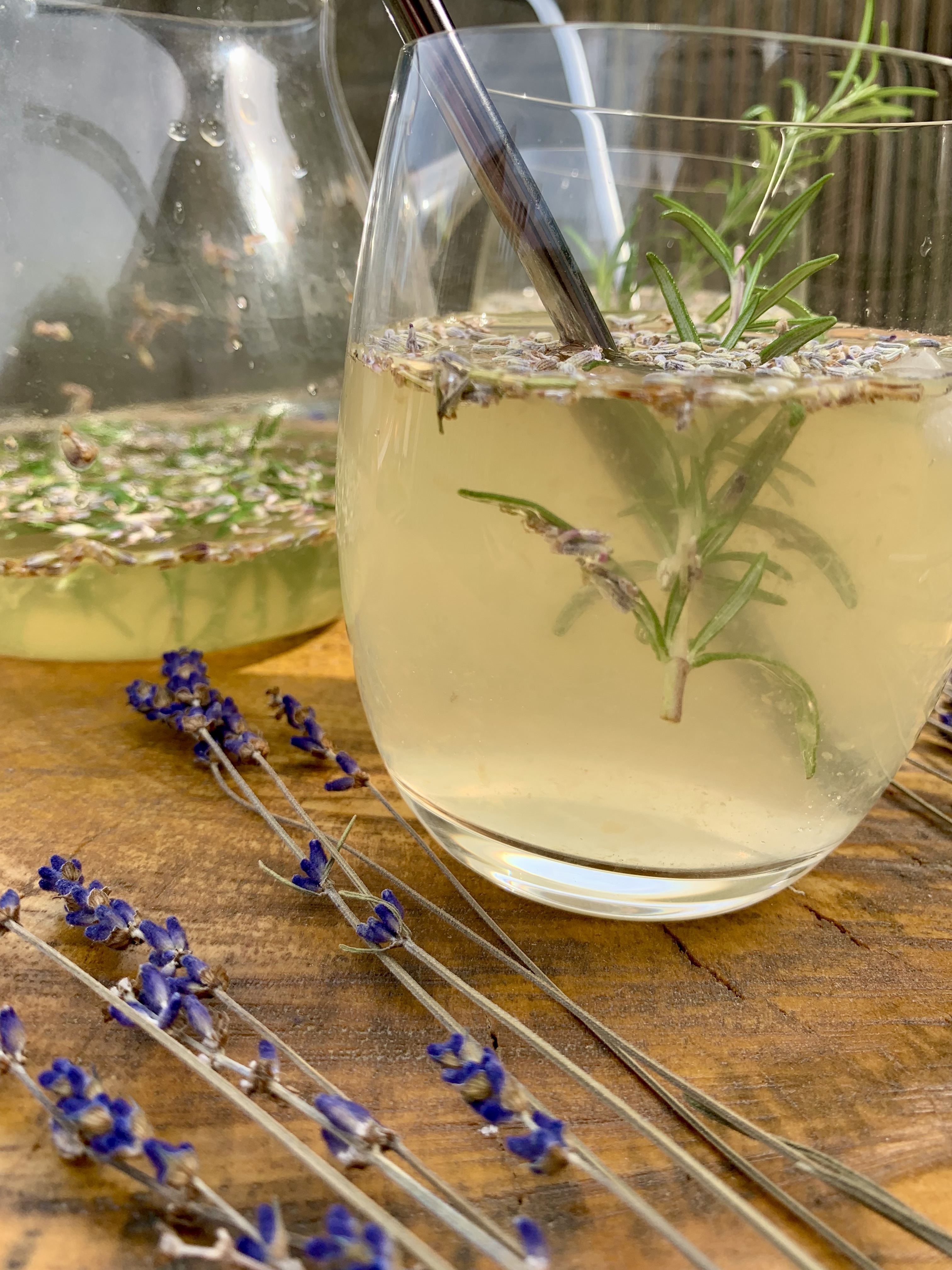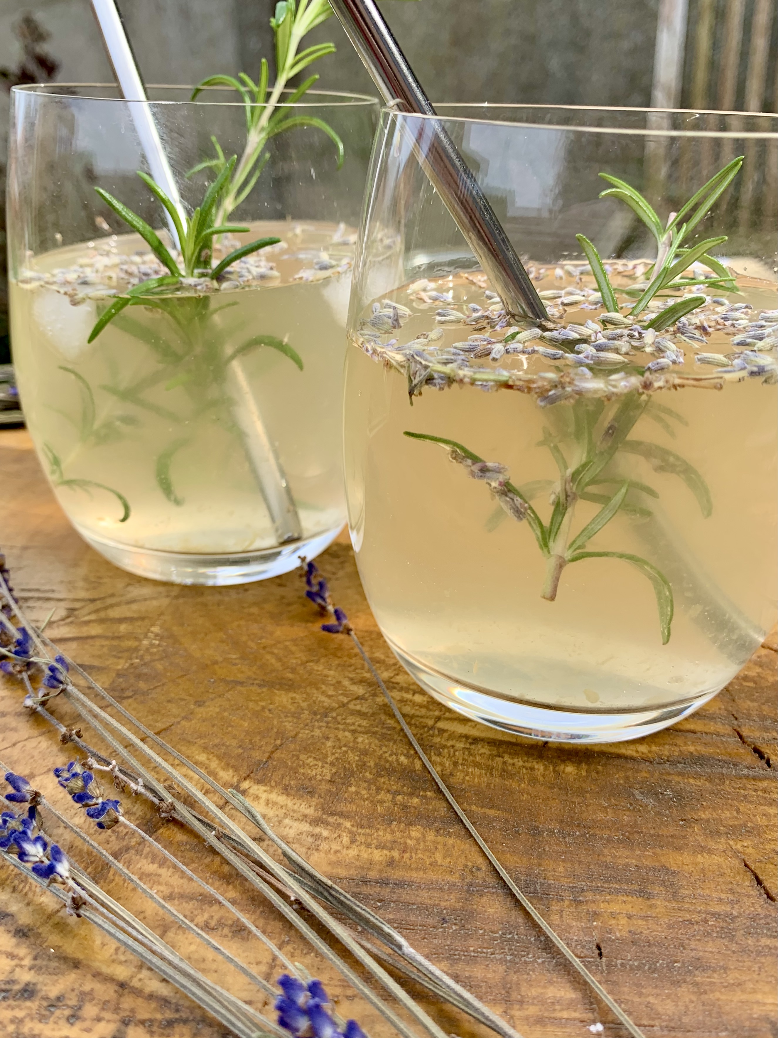 - Serveer in mooie glaasjes met een extra takje rozemarijn, enkele lavendelbloemetjes, een ijsblokje en een rietje.