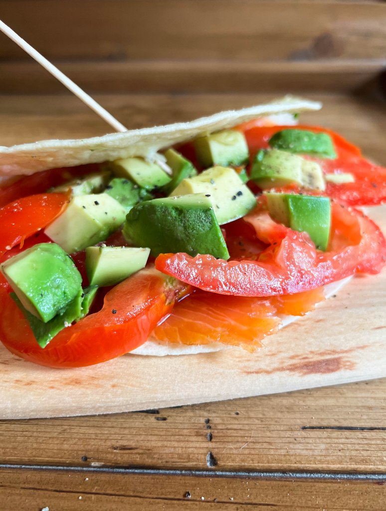 - Beleg de wraps met de tomaat en de avocadoblokjes.
