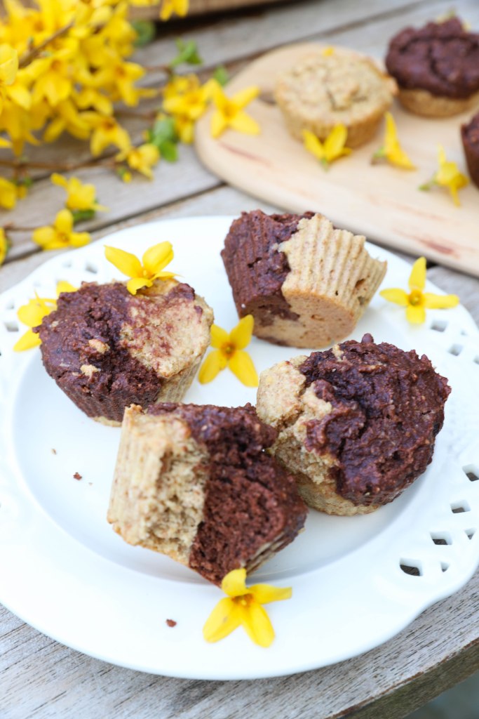 Vrolijk Pasen! Ter gelegenheid van deze feestdag wil ik mijn recept voor chocolade vanille muffins met je delen. Waarom zou je kiezen tussen vanille en chocolade als je ze ook gewoon kan combineren? Met deze muffins verenigen we het beste van de twee werelden! Voor de chocoladelaag gebruiken we cacaopoeder. Hier is het belangrijk dat je kiest voor de ongezoete en onbewerkte variant. Die geeft niet alleen een veel rijkere chocoladesmaak aan de muffins maar is ook veel gezonder.