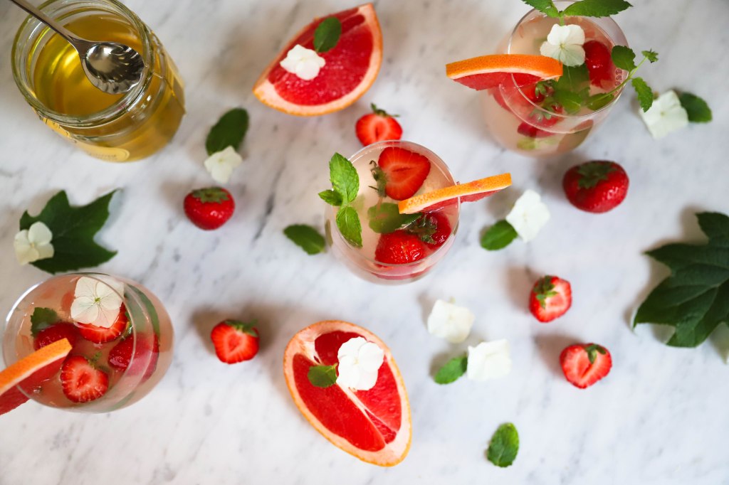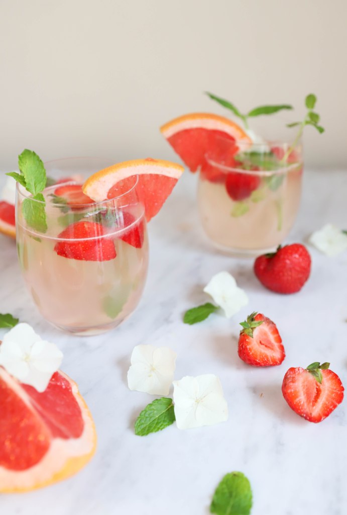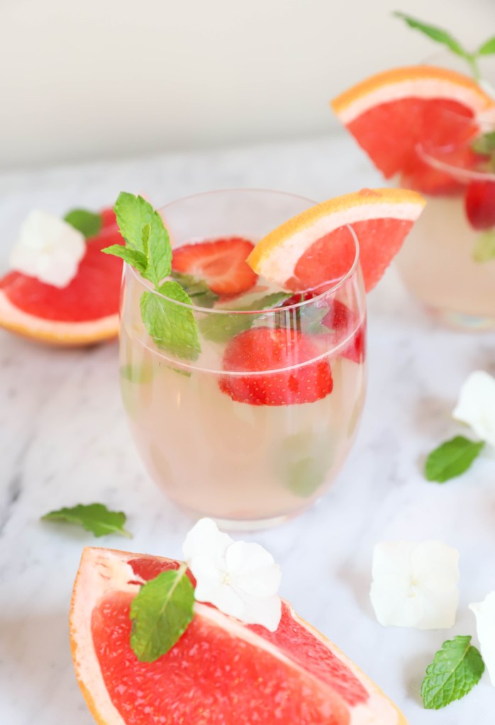Zomers drankje met pompelmoes en aardbeien (zonder alcohol)