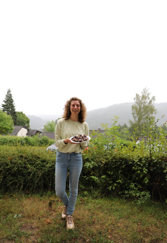 - Neem wat van het deeg in je handen en vorm er koekjes van. Leg er dan 3 à 4 halve druiven op en duw goed aan. Dat gaat het vlotste als je de koek in de hand houdt.