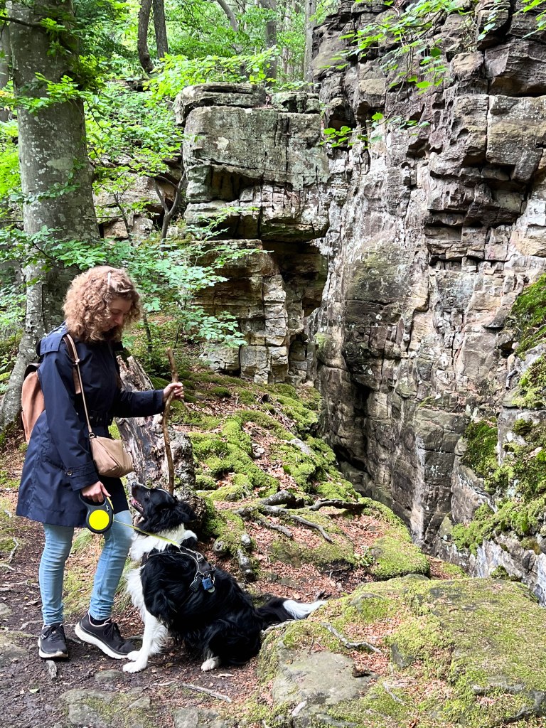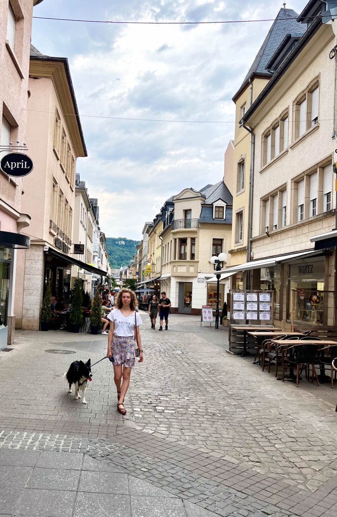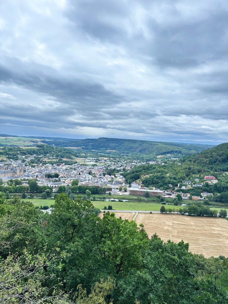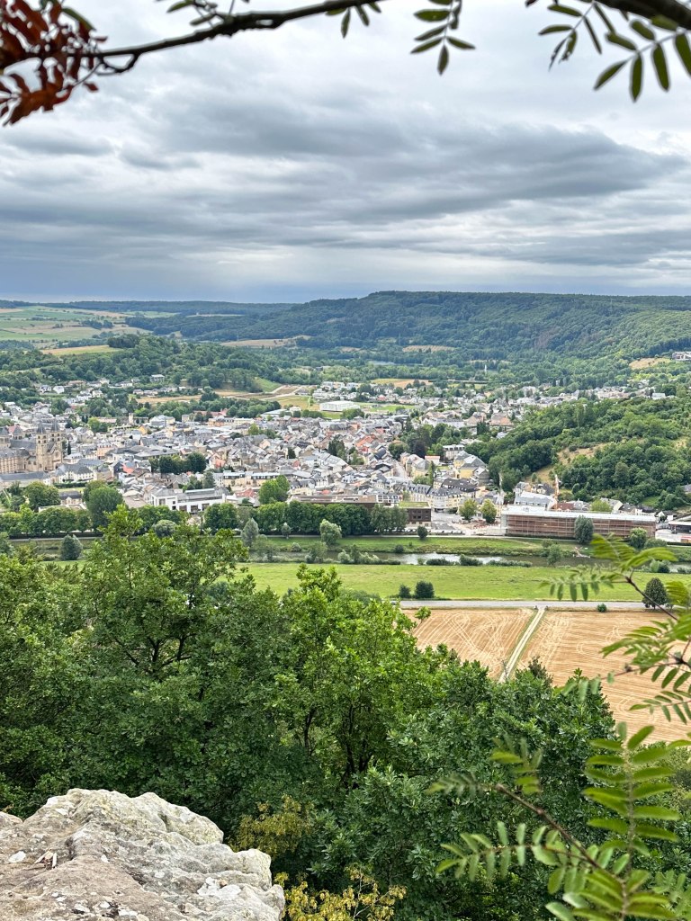Deze tocht begint in Ferschweiler. Vanaf daar volg je steeds de bordjes richting Echternach. In het begin heb je een stevige klim en vanaf dan loop je op een padje met aan de ene kant een rotswand en aan de andere kant een afgrond. Enthousiaste honden kunnen zeker mee maar dan wel best aan de leiband. 🙂 Je wandelt ter hoogte van de kruinen van de bomen, die zachtjes meewiegen op het ritme van de wind. Tegen het einde van de wandeling bereik je een uitzichtpunt dat vanuit de hoogte een adembenemend zicht geeft over Echternach. Alleen al voor dit beeld, zou je deze wandeling eens moeten doen. Echt de moete waard!
