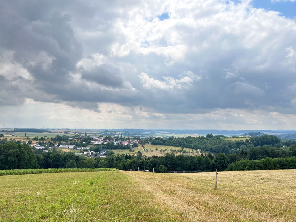 Deze wandeling gaat door velden en door bossen, langs koeien en zonnebloemplantages. Na een stevige klim in het begin kan je de rest van de wandeling genieten van de prachtige vergezichten. Op de voorgrond wisselen verschillende types landbouwgronden elkaar af en de diepgroene bossen vormen het decor van dit heuvelachtige landschap.