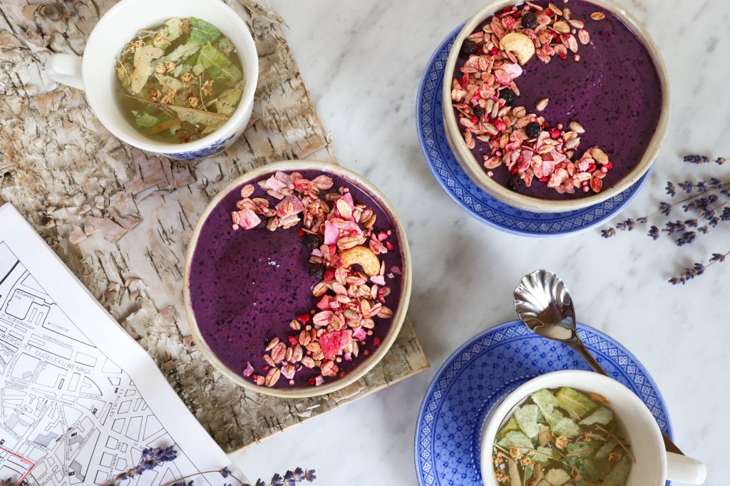 Blauwe bessen zijn op hun best van juli tot september. De rest van het jaar gebruik ik diepvriesbessen om in mijn gerechten te verwerken. De smaak is niet helemaal hetzelfde als die van de verse maar ze hebben wel een ander groot voordeel: ze maken je gerecht lekker fris. (We gaan positief blijven hé 😉). Deze eigenschap én een optimistische kijk, vormen samen de basis van mijn blauwe bessen parfait.