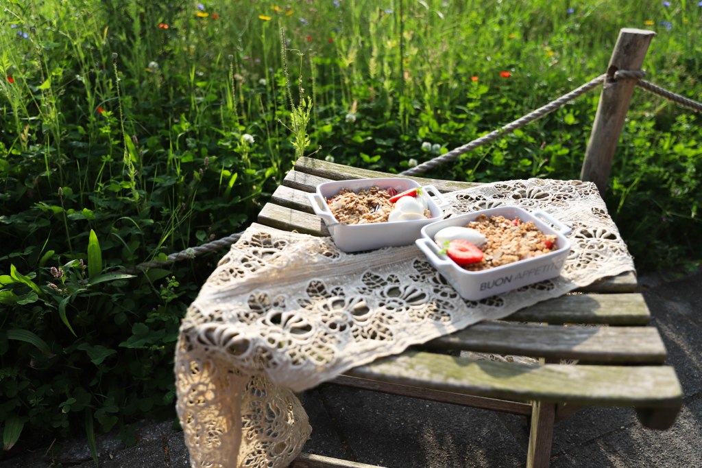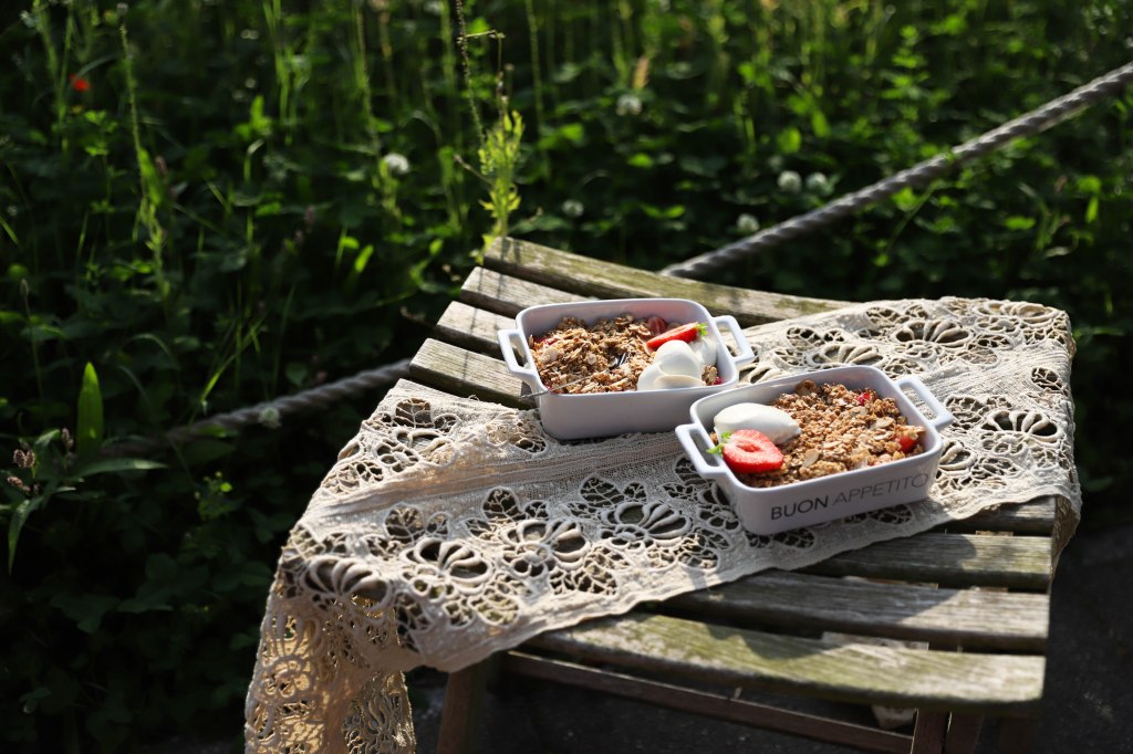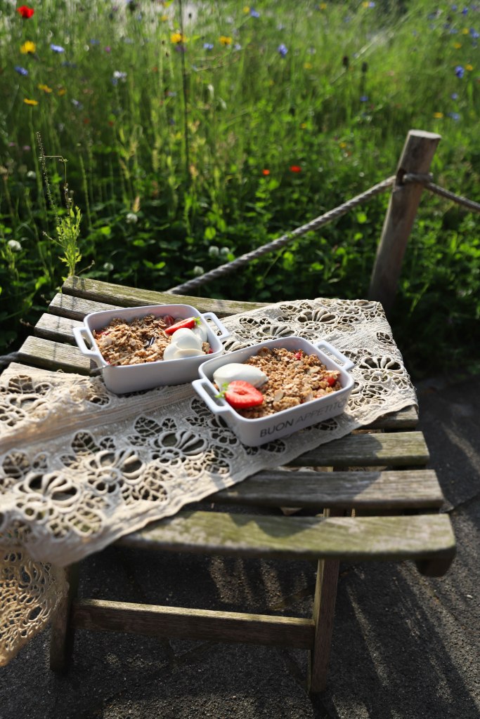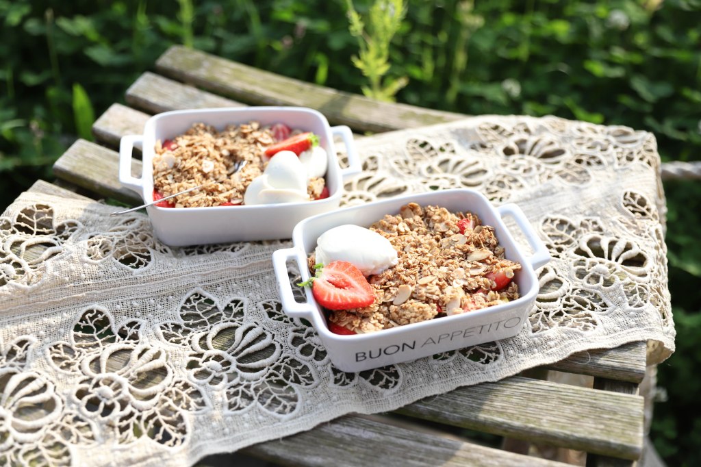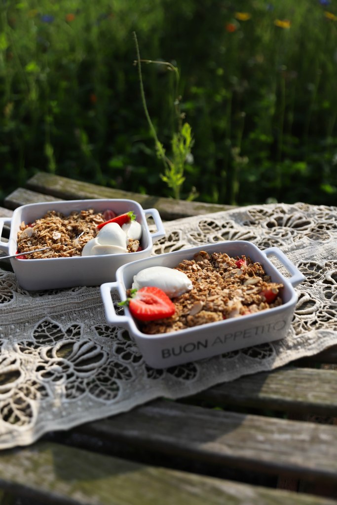 De zoete smaak van de nectarines en aardbeien zijn een ware verwennerij. De zachte structuur van het warme fruit is een fijne afwisseling op wat we ervan gewoon zijn én het vormt ook een interessant contrast met de crumble. De havermout en amandelen zijn een hemelse combinatie. Ze zorgen er bovendien ook voor dat je langer verzadigd zal blijven en dus niet meteen weer honger hebt.