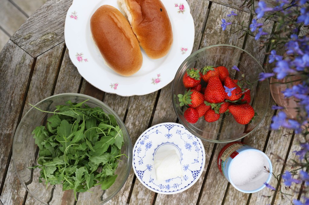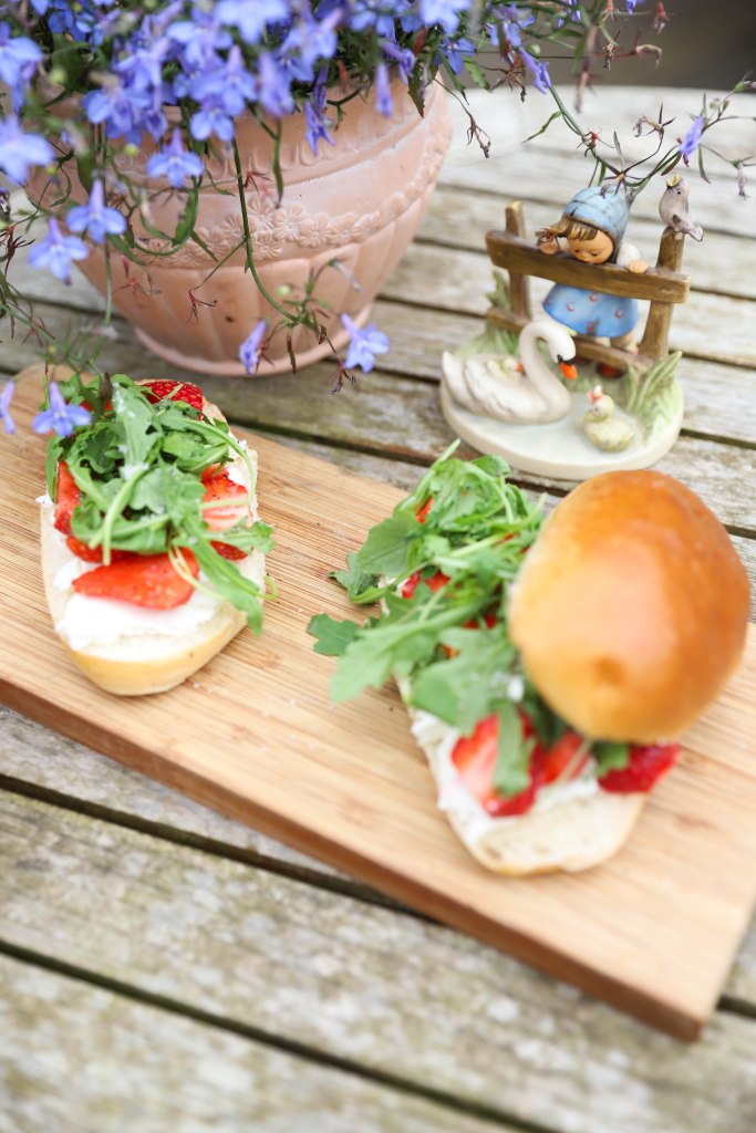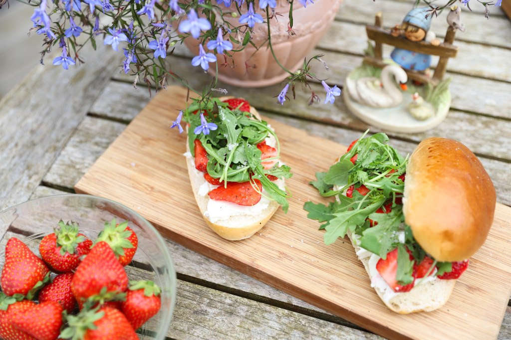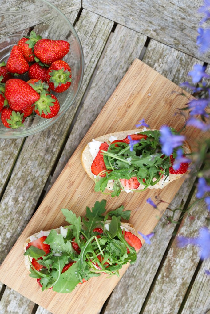 Zomerse broodjes met rucola, aardbeien en geitenkaas
