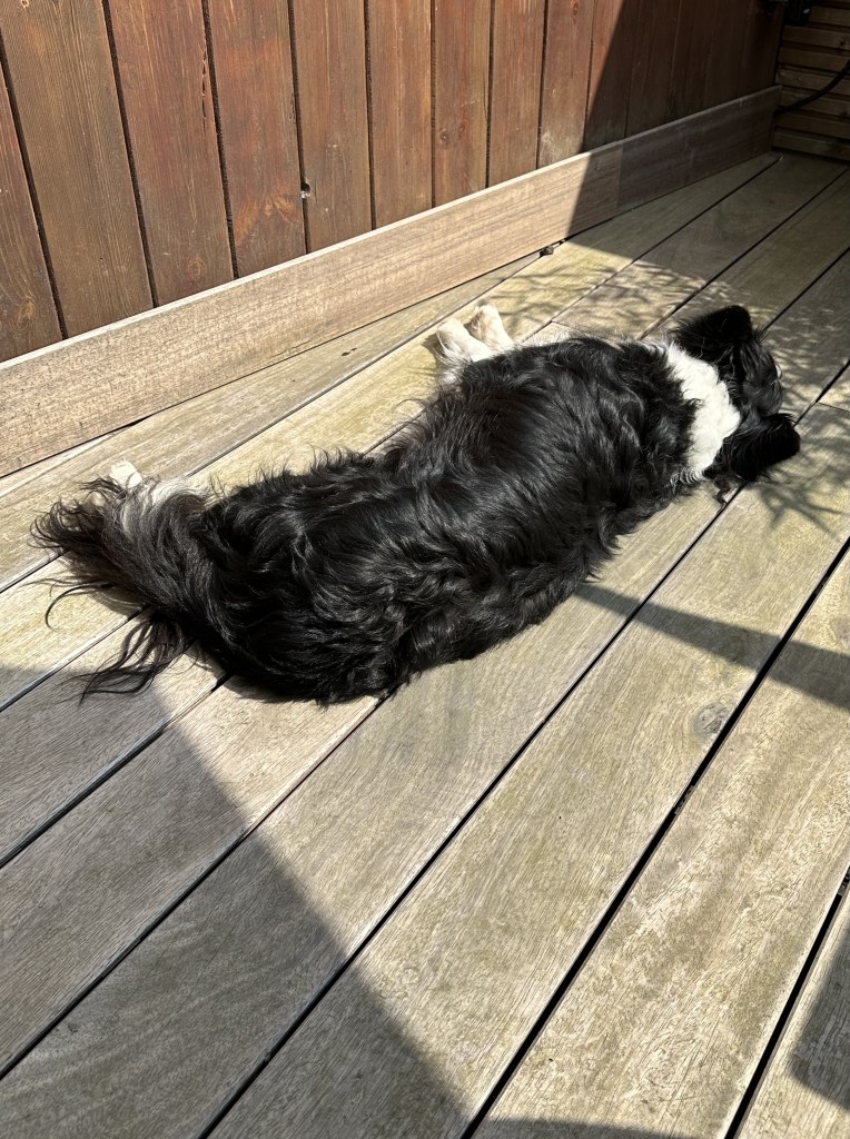 Het is nu 24°C. Zara (mijn overenthousiaste border collie) ligt op het terras te zonnen. Vico (mijn andere hond) ligt naast mij onder de parasol. Een zachte windbries streelt door mijn haren. Met het zicht op een felblauwe lucht en een wit vlindertje dat vrolijk voorbij dartelt, denk ik na over wat we vandaag gaan eten.