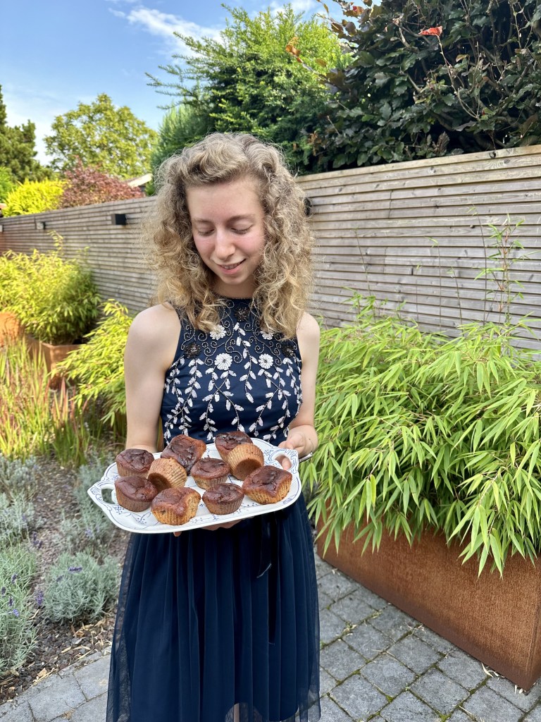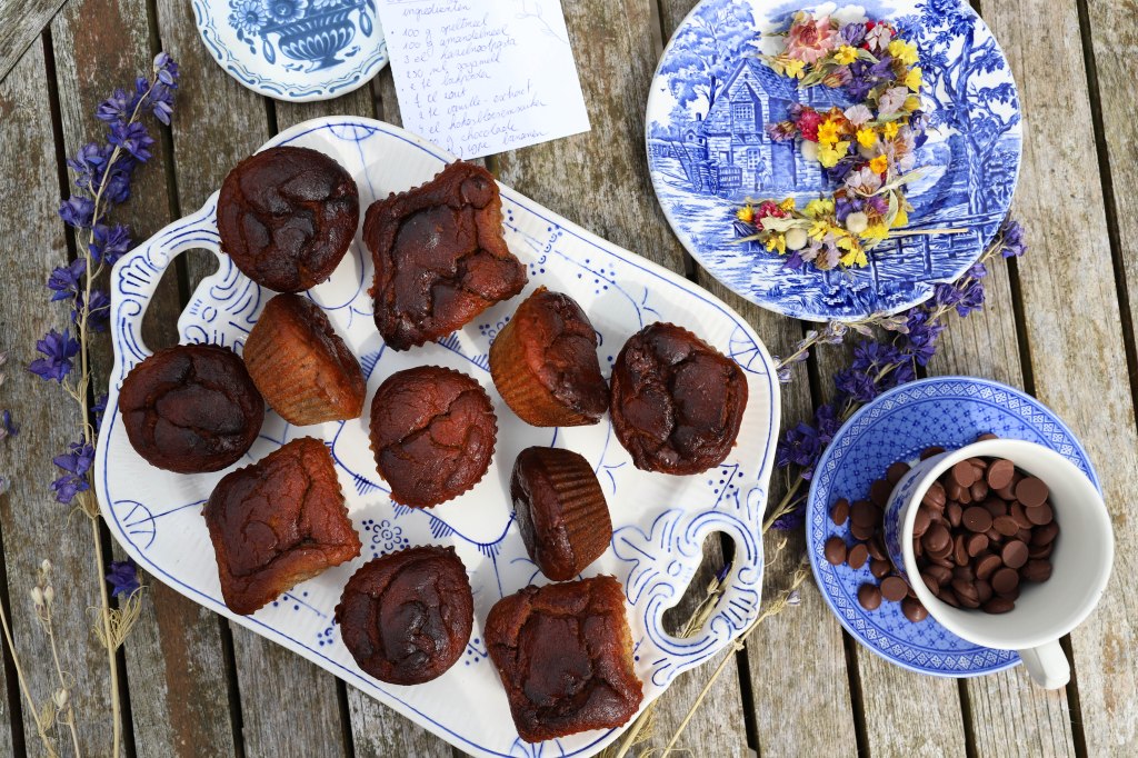 Als je te weinig muffinvormpjes hebt, mag je de overschot van het deeg ook in een cakevorm (met bakpapier) doen. Die kan je gewoon mee met de muffins in de oven zetten. Omdat een cake groter is dan muffins, moet die ook wat langer in de oven blijven staan. Bij mij was dat bijvoorbeeld 20 minuten extra. Gebruik hier ook gerust de truk met de vork om te testen of de cake genoeg gebakken is.