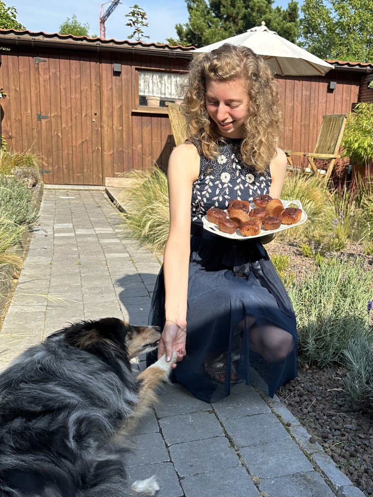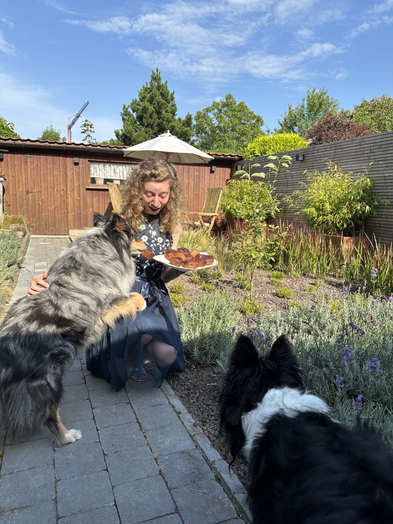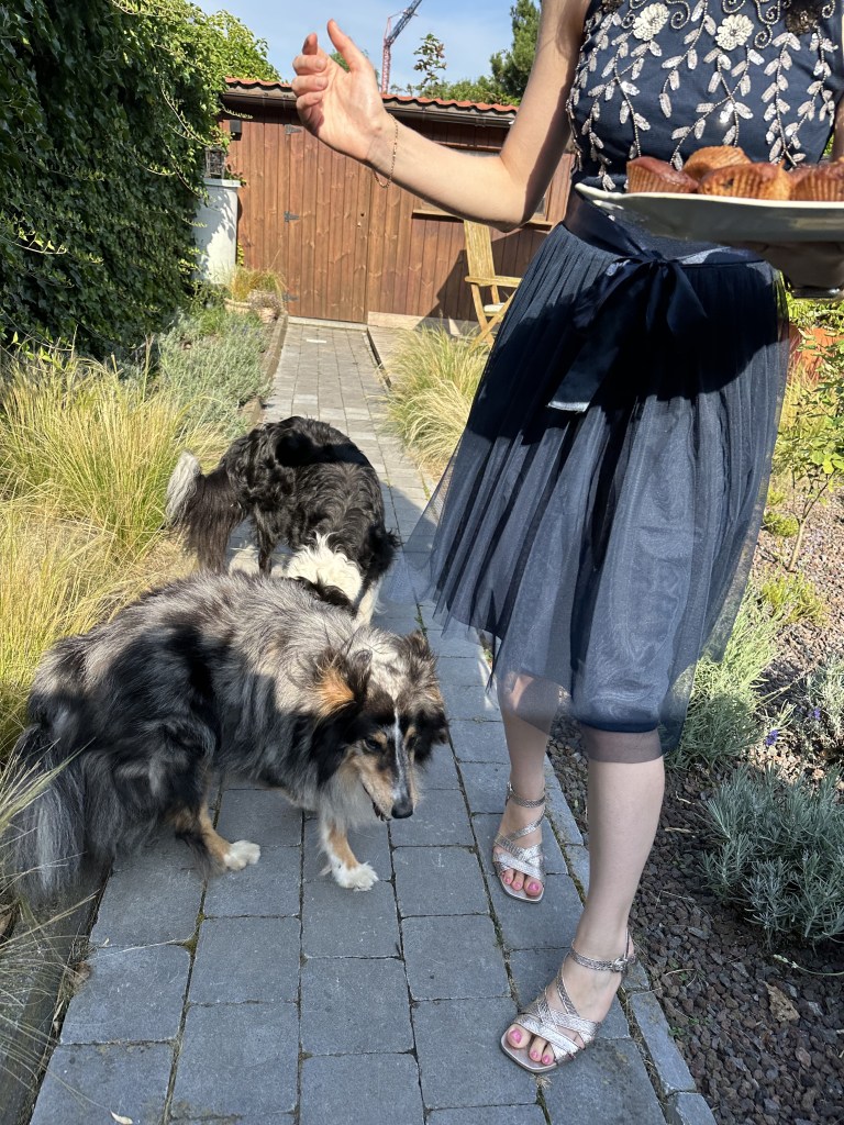 Er waren eens Vico en Zara, twee honden die een foodblogger als baasje hadden. Voor het driejarig bestaan van die blog gingen ze spontaan mee op de foto. Waarschijnlijk vooral vanwege de interesse in het bordje muffins dat hun baasje vast had, maar goed, het zou een mooie foto kunnen worden. Zara, de border collie, had op voorhand moeten beloven dat ze niets zou stelen, want dat was namelijk wat ze het allerliefste deed. Met Vico was er niet eens iets afgesproken geweest want die was altijd mega braaf. Plots kwam Vico heel spontaan mee in beeld gelopen en ging naast zijn baasje op de foto liggen. Iedereen was gecharmeerd door zijn schattige voorkomen maar hij was vooral gefocust op de muffins. In een schijnbeweging van een zoen geven aan zijn baasje, stal hij een muffin van het bordje. Zara stond er van ver naar te kijken. Net voor zij zich voornam om nooit meer te luisteren naar afspraken die met eten te maken hadden, kreeg ze dan toch ook nog iets lekkers. Zo leefden ze daarna nog lang en gelukkig en bakten samen nog heel veel muffins. Dit hele sprookje is ook op camera vastgelegd.