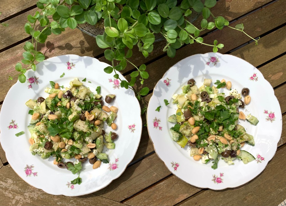 De komkommer zorgt voor friste en de peer brengt een zoete toets in het verhaal. Deze salade is er ééntje om absoluut eens uit te proberen.