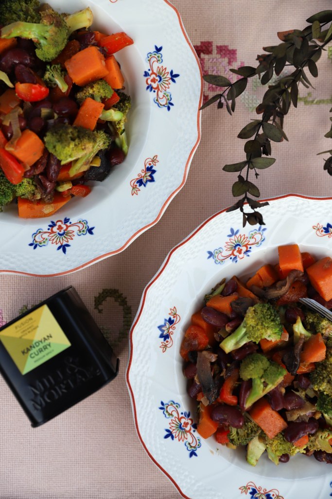 Deze curry is een smakelijke en makkelijke manier om een rijkelijke portie groenten in een maaltijd te verwerken. Dit gerecht is een kleurrijk tafereel, een bron van goede stoffen én ook een menuutje dat je gemakkelijk op voorhand kunt klaarmaken. Smakelijk!