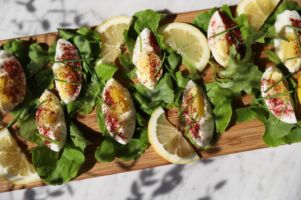 3 Feestelijke hardgekookte eieren met sumak en veldsla