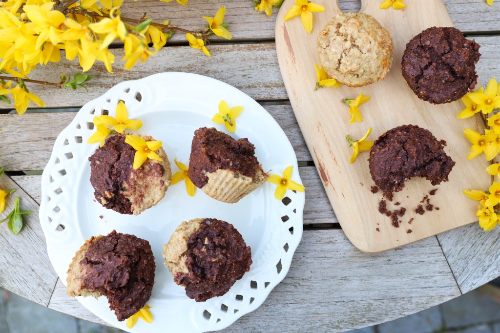 Voor het oog, de zoete tand en de hongerige maag mogen muffins echt niet ontbreken op de Paastafel. Er bestaan er met chocolade en er bestaan er met vanille maar deze versie heeft van de twee werelden het beste meegekregen. Het maakt deze muffins een remedie voor keuzestress en een pleidooi voor gezondere, zelfgebakken zaligheden.