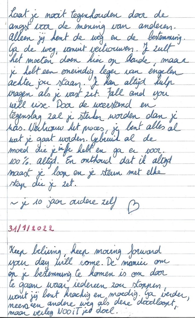 Laat je nooit tegenhouden door de angst en de mening van anderen.
