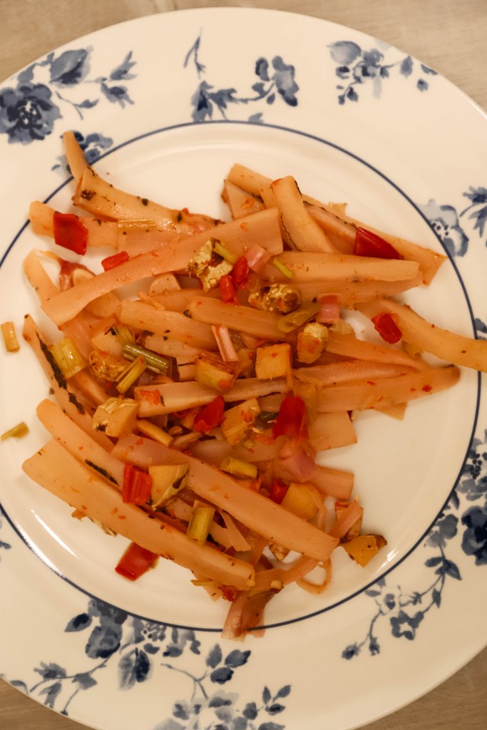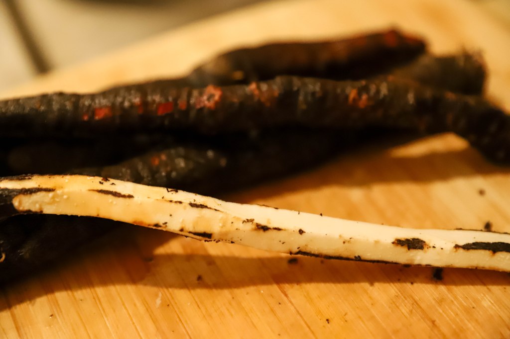 Door de schorseneren te laten marineren in een mengsel van enkele zeer pittige smaakmakers, namen ze de zeer uitgesproken en pikante smaak over. Dit waren o.a. chllipeper, gember, sojasaus, citroengras, bloedsinaasappel… De schorseneer had ik in fijne stukken gesneden zoals je met ceviche ook zou doen. Deze kruidencombinatie was geïnspireerd op een recept van deze site.(3)