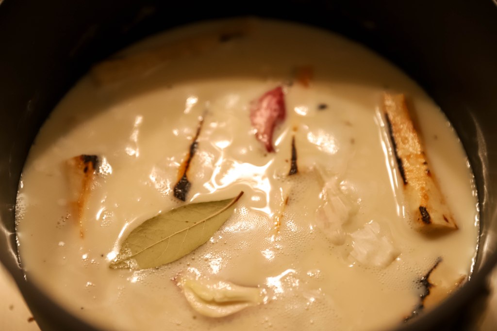 Hiervoor laat je geschilde schorseneren zo lang als ze nodig hebben, garen in melk met een blaadje laurier en een klein knoflookteentje. Om ervoor te zorgen dat niet alles verdampt, dek je dit best af met een deksel of bakpapier.